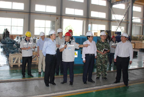 于東一行首先參觀了公司生產車間及展廳,認真聽取了董事長陳培倫對公司的安全生產及生產經營、發展規劃等情況的匯報。陳培倫介紹,龍港股份歷來重視安全生產工作,堅持“安全第一、預防為主、綜合治理”方針,從制度建設、設備設施、培訓落實等環節入手,全面預防安全事故的發生。近年來,在高新區工委、管委的關心和支持下,龍港股份立足特種泵產業,不斷開拓進取、追求品質、創新服務,公司實現了跨越成長。公司將持續加大技術創新、人才儲備、管理提升、市場優化,不斷提質增效,做大做強。